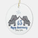 Niedliches 45. Saphir Hochzeitstag kreisrunder hängender Dekoration in lila-weiß mit einem Elefantenpaar. Das Ornament enthält Platz für die Namen des verheirateten Ehepaares sowie die Jubiläumsnummer. Ideal für Ehemann und Ehefrau oder Mama und Vater, die 45 wunderbare Jahre Ehe feiern. Das gezeigte Design kann personalisiert sein. Die passenden Grußkarten sind ebenfalls verfügbar.