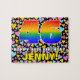 Dieses pulsierende und lustige Geburtstagstheater-Puzzle-Design zeigt eine große Zahl "46" mit einem farbigen Regenbogenspektrum, inspiriert Farbverlaufsmuster, zusammen mit der Meldung "HAPPY 46. BIRTHDAY" und einem personalisierten Empfängernamen. Der Hintergrund weist ein optimistisches Muster von Herzformen mit verschiedenen Farben und Größen auf. So ein auffälliges, personalisiertes Geburtstagsrätsel könnte anlässlich des sechsundvierzigsten Geburtstags von jemandem geschenkt werden. [~Z0000611]