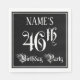 Dieses opulente und verzierte Geburtstagsthema hat einen personalisierten Namen und die Meldung "46. Geburtstagsparty". Die große Zahl "46." und die Wörter "Geburtstagsparty" sind in luxuriösem Skriptstil gehalten, der Hintergrund ist standardmäßig schwarz gefärbt (auch wenn er angepasst werden kann). Elegante, luxuriöse Papierservietten wie diese sind vielleicht nützlich, um bei einer Geburtstagsfeier/einem Party zu feiern, um jemandes 46. Geburtstag zu feiern. [~Z0000563]