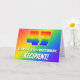 Die Vorderseite dieses aufregenden und lustigen Geburtstagskarten-Designs zeigt eine große Zahl "47" mit einem farbenfrohen Regenbogenspektrum, inspiriert Farbverlaufsmuster. Es enthält auch die Meldung "HAPPY 47. BIRTHDAY", und einen personalisierten Empfängernamen. Der Hintergrund auf der Vorderseite hat auch ein lebendiges Regenbogenmuster. Die Innenseite verfügt über eine individuell anpassbare Geburtstagsgrüßnachricht, oder könnte gelöscht und links werden, wenn eine Nachricht von Hand geschrieben werden soll. Eine optimistische, maßgeschneiderte Geburtstagskarte wie diese könnte eine lustige Art sein, jemandem, der seinen siebenundvierzigsten Geburtstag feiert, eine Geburtstagsgrüßbotschaft zu schicken. [~Z0000585]