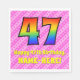Dieses festliche und fröhliche 47. Geburtstags-Thema Papier Serviette Design hat eine große Zahl "47" mit einem bunten Muster inspiriert durch das Aussehen eines Regenbogenspektrums. Es enthält auch die Meldung "Happy 47 th Birthday", gefolgt von einem personalisierten Namen. Der Hintergrund weist ein fröhliches Muster aus dunkelrosa und hellrosa Streifen auf, die sich in liebevollen rosa Herzformen auszeichnen. Spaß, bearbeitbare Papierservietten wie diese könnten bei einer Feier benutzt werden, um jemandes siebenundvierzigsten Geburtstag zu ehren. [~Z0000417]