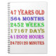 47. Geburtstag, der die Jahre, Tage, Monate, Stunden und Minuten hinunter zählt. Ein Geburtstagsgeschenk zum Nachdenken! Es wurden die Leap-Jahre berücksichtigt!