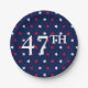 47 Präsident rot-weiß-blaue Sterne Muster politische Wahl patriotische Party Papier Teller. Rot-weiße Sterne Muster auf marineblau Hintergrund. Mit vollständig anpassbaren Zahlen, sodass Sie sie ändern, personalisieren und einzigartig machen können.