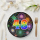 Dieses fröhliche, lustige und farbenfrohe Papier-Plattendesign zeichnet sich durch eine große Zahl "48" mit einem inspirierten Regenbogenspektrum aus. Es zeichnet sich auch durch ein lebendiges und aufregendes Feuerwerk inspiriert. Der Hintergrund ist schwarz. Teller wie diese können bei Jemanden zum achtundvierzigsten Geburtstag, einem 48. Jubiläum-Party oder einem anderen 48. [~Z0000490]