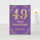49. Geburtstag Lila und Gold Glitzer Frame Karte