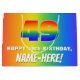 This cheerful and vibrant birthday themed giftbag design features a large number “49” with a colorful rainbow spectrum inspired gradient pattern, along with the message “HAPPY 49th BIRTHDAY,”, and a personalized recipient name. The background also features a joyful multicolored rainbow spectrum inspired gradient pattern. Birthday themed giftbags like this might be used when giving gifts or presents in celebration of somebody’s forty ninth birthday. [~Z0000577]