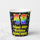 This exciting and fun birthday paper cup design features a large number “49” with a rainbow spectrum gradient inspired pattern, along with the message “Happy 49th Birthday,”, and a customizable name. The background features a multicolored star field inspired pattern. Vibrant, colorful paper cups like this might be fun to use at a birthday party/celebration being held to honor somebody’s forty ninth birthday. [~Z0000540]