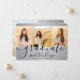 Teilen Sie die Freude eines High School oder Uni-Abschlusses mit diesen individuellen 4 Foto Collage Silber und Schwarz Ankündigungen. Alle Bilder und Texte sind einfach zu personalisieren. (IMAGE PLACEMENT TIP: Eine einfache Möglichkeit, ein Foto genau so zu zentrieren, wie Sie es gewollt haben, ist es, es einzuschneiden, bevor Sie es auf die Zazzle-Website hochladen.) Diese Vorlage ist einfach zu personalisieren mit beliebigen Details Ihrer Wahl, wie Party Einladung-Info, Eltern-Namen, Sonderehren, Studientitel, bevorzugten inspirierenden Zitat, Kontaktinformationen für Absolventen, zukünftige Bildungen oder neue Stellenangebote. Wenn ein Text nicht gewollt ist, löschen Sie ihn einfach. Das Design besticht durch einen Imitat aus metallischem, gebürstetem Edelstahl-Hintergrund, eine schwarze Mörtel-Kappe, handgeschriebene Schriftzeichen-Kalligraphie, moderne minimalistische Typografie und vier Fotos Ihrer Wahl, wie z.B. Seniorbilder oder Bilder aus der Anlaufzeremonie. Bitte beachten Sie, dass Silber gedruckt und nicht als Folie gedruckt ist.Diese eleganten Ankündigungskarten für Abschluss sind eine schicke und trendige Möglichkeit, Ihre Feier mit Familie und Freunden zu teilen. Herzlichen Glückwunsch an den Absolventen!