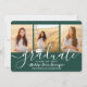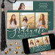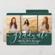 Teilen Sie die Freude eines Gymnasiums oder Uni-Abschlusses mit diesen individuellen 4 Foto Collage Green und White Ankündigungen. Alle Bilder und Texte sind einfach zu personalisieren. (IMAGE PLACEMENT TIP: Eine einfache Möglichkeit, ein Foto genau so zu zentrieren, wie Sie es gewollt haben, ist es, es einzuschneiden, bevor Sie es auf die Zazzle-Website hochladen.) Diese Vorlage kann mit allen von Ihnen gewünschten Informationen wie Party Einladung-Infos, Eltern-Namen, Sonderehren, Studientitel, bevorzugten inspirierenden Zitat, Kontaktinformationen für Absolventen, künftigen Bildungen oder neuen Stellenangeboten individuell angepasst werden. Das Design bietet einen dunkelgrünen Hintergrund, weiße Mörtel-Kappe, handgeschriebene Schrift-Kalligraphie, moderne minimalistische Typografie und vier Fotos Ihrer Wahl, wie Seniorenbilder oder Bilder aus der Antrittsfeier. Diese eleganten Ankündigungskarten für Abschlüsse sind eine schicke und trendige Art, Ihre Feier mit Freunden und Familie zu teilen. Herzlichen Glückwunsch an den Absolventen!