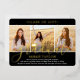 Laden Sie Ihre Familie und Freunde ein, um eine High School oder Uni-Abschluss mit stilvollen 4 Foto Collage Schwarz, Weiß und Gold-Folie Einladungen zu feiern. Alle Bilder und Texte sind einfach zu personalisieren. (IMAGE PLACEMENT TIP: Eine einfache Möglichkeit, ein Foto genau so zu zentrieren, wie Sie es gewollt haben, ist es, es einzuschneiden, bevor Sie es auf die Zazzle-Website hochladen.) Die Vorderseite des Designs ist mit einer echten metallischen Folie auf schwarzem Hintergrund bedruckt. Es verfügt über eine Mörtel-Kappe, handgeschriebene Schriftzeichen-Kalligraphie, elegante moderne Typografie und vier Fotos Ihrer Wahl, wie Seniorbilder oder Bilder aus der Anlaufzeremonie. Diese elegante Einladungskarte für den Abschluss ist eine schicke und trendige Art und Weise, Ihre Feier zu einem besonderen Tag zu beginnen. Herzlichen Glückwunsch an den Absolventen!