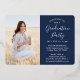 4 Foto Graduation Party Modernes Script Navy Blue Folieneinladung