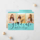 Teilen Sie die Freude eines High School oder Uni-Abschlusses mit diesen individuellen 4 Foto Collage aquamarine blaue und schwarze Ankündigungen. Alle Bilder und Texte sind einfach zu personalisieren. (IMAGE PLACEMENT TIP: Eine einfache Möglichkeit, ein Foto genau so zu zentrieren, wie Sie es gewollt haben, ist es, es einzuschneiden, bevor Sie es auf die Zazzle-Website hochladen.) Diese Vorlage ist einfach zu personalisieren mit beliebigen Details Ihrer Wahl, wie Party Einladung-Info, Eltern-Namen, Sonderehren, Studientitel, bevorzugten inspirierenden Zitat, Kontaktinformationen für Absolventen, zukünftige Bildungen oder neue Stellenangebote. Wenn ein Text nicht gewollt ist, löschen Sie ihn einfach. Das Design zeichnet sich durch einen aquamarin-türkisblauen, gebürsteten Hintergrund, eine schwarze Mörtel-Kappe, handgeschriebene Schrift-Kalligraphie, moderne minimalistische Typografie und vier Fotos Ihrer Wahl aus, wie Seniorbilder oder Bilder aus der Anlaufzeremonie. Bitte beachten Sie, dass der Hintergrund farbig und nicht metallisch ist.Diese eleganten Ankündigungskarten für Abschlüsse sind eine schicke und trendige Möglichkeit, Ihre Feier mit Freunden und der Familie zu teilen. Herzlichen Glückwunsch an den Absolventen!