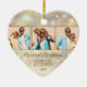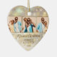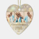 Ihre beliebten 3 Fotos sind vorne und eins auf der Rückseite eines herzförmigen Keramik-Ornaments mit goldenen Schneeflocken, Sternen und Punkten auf einem Urlaubshintergrund von verschwommenen Lichtern und Sternen. Laden Sie Ihre eigenen Bilder hoch, um Weihnachtsbaumschmuck für sich selbst zu kreieren oder geben Sie als Geschenk an Familie, Freunde, Eltern und Großeltern! MEHR Materialien, Formen und DESIGNS in unserem Geschäft.