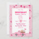 Diese Einladung eignet sich perfekt für ein süßes 4. Geburtstags-Party! Auf der Vorderseite der Einladung befindet sich ein rosafarbener LKW mit Blume, Ballons und Herz. Der Hintergrund ist rosa und rote Herzen. Fügen Sie mithilfe der Vorlage Ihre Party-Daten hinzu.
