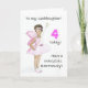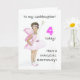 Eine 4. Geburtstagskarte für eine Patchstochter, mit einer schwarzen Fee in einem rosa Kleid, aus einer Aquarellbild von Judy Adamson. Bitte fühlen Sie sich frei, die innere Nachricht anzupassen und kontaktieren Sie mich durch meinen Shop, wenn Sie Änderungen an der Frontabdeckung möchten.