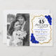 40. Hochzeitstag Einladung mit Foto. Elegantes Design in Saphir und Weiß mit Imitaten Glitzer Gold. Enthält Skript-Schriftart, königsblaue Rose und Konfetti. Kann in jedes Jahr personalisiert werden! Nachricht, wenn Sie weitere Anpassungen benötigen.