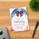 Dieses Design zeigt das 4. Juli Party mit US-Flagge inspiriert Bugband, rot-weiß und blau Aquarell Hintergrund. Ideal für patriotische GRILLEN Party. Personalisieren Sie es mit Ihren Veranstaltungsdetails, um es ganz Ihrer zu machen!