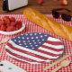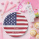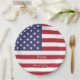 4. Juli American USA Flag Patriotic Design for Paper PlateAmerican Flag - Patriotic Red, White and Blue Streifen und Sternzeichen Schild. Stilvolle Dekorationselemente, Ornamente. Personalisiert mit Ihrem Namen, Text, patriotischen Wünschen oder einfach nur den Text löschen. Modernes Design für Feiern am 4. Juli, Gedenktag oder Veteranentag.