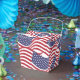 Gastgeschenk-Box in einem patriotischen USA Flag 4. Juli Print-Design. Passen Sie dieses Objekt an oder kaufen Sie, wie es ist. Börsenbild freepik.com