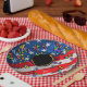 3-dimensionale rote, weiße und blaue Donut mit Sprinklen.