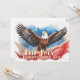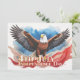 Leistungsstarkes Kunstwerk mit einem Glatzenadler mit ausgestreckten Flügeln und dynamischen roten, weißen und blauen Elementen - symbolisches patriotisches Design für den Unabhängigkeitstag.