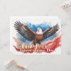 Leistungsstarkes Kunstwerk mit einem Glatzenadler mit ausgestreckten Flügeln und dynamischen roten, weißen und blauen Elementen - symbolisches patriotisches Design für den Unabhängigkeitstag.