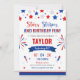Bring Rot, Weiß und Blau an! Diese festliche Geburtstagsveranstaltung ist voller patriotischer Flair, verspieltem Feuerwerk und kühnen Stars - ideal für eine Sommerfeier, die Ihre Gäste nicht vergessen werden. Ob Sie nun ein Kindergeburtstag-Party, einen Bash vom 4. Juli, eine GRILLEN im Sommer oder sogar eine Wiedersehen über das Memorial Day Wochenende planen, dieses moderne Design verleiht jeder Ansammlung einen Funken. Ideal für Geburtstage aller Altersgruppen - vom 1. bis zum 30., 40. oder 50. Geburtstag - Set es den Ton für ein star-gesprenketes Ereignis. Es ist anpassbar und leicht zu personalisieren. Lass allen, dass es Zeit ist, mit dieser modernen Einladung, die die Freude an Feuerwerk, Sonnenschein und Sommerspass einfängt, Party zu machen!