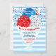 Diese unterhaltsame und spielerische Einladung bietet eine Kugel mit Eiskrem in hellrot, dunkelblau und hellgrau mit Sprinklen. Der Hintergrund hat blaue und weiße Streifen. Der Text kombiniert fett und serifenlose Schriftart für ein stilvolles und modernes Aussehen. Das ist perfekt für eine Geburtstagsfeier zum 4. Juli.