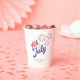 4. Juli, Feuerwerk Papier Tasse. Das niedliche Feuerwerk in Rot und Blau feiert den Unabhängigkeitstag mit Stil. Klassischer Schriftart und lustige Feuerwerke verleihen diesen leicht anpassbaren Papiertassen eine patriotische Ästhetik. Sie finden passende Artikel zu diesem Design-Thema in der GRILLEN Fireworks Kollektion vom 4. Juli