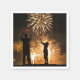 Ein Mann und ein Kind haben in einer feierlichen Szene zum 4. Juli-Fest die amerikanischen Fahnen versteckt, um gegen eine lebendige Ausstellung von Feuerwerken zu stilisieren.