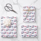 Sportspiele inspiriert Packpapier für den 4. Juli mit Abbildungen von Fußbällen und Sternen in Blau und Rot.