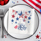 Diese knallrote Papierserviette besticht durch ein lustiges Independence Day Design dekorativer roter, weißer und blauer Sterne in einem anmutigen Bogen über wunderschöner Kalligraphie, die "Happy 4. Juli" lautet. Ideal für die Schwanz-Gate-Party und Barbecues, wenn Sie den Anlass feiern. Durchsuchen Sie ID1103 um alle koordinierenden Produkte mit diesem fröhlichen Design zu sehen.