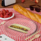 4. Juli Hot Dog auf Gingham Pappteller