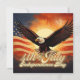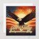 Ein mächtiger Glatzadler breitet seine Flügel vor einem dramatischen Sonnenuntergang aus, während die amerikanische Flagge majestätisch im Hintergrund fliegt. Gerahmt von Feuerwerken strahlt das Bild rein patriotischen Power aus - ein künstlerisches Symbol für Freiheit, Stolz und den amerikanischen Geist. Perfekt für den Unabhängigkeitstag - dynamische, feurige, unverkennbar USA.