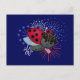 Die Urlaubsladybug mit einem Trikornhut und das Wachsen der Betsy Toss Fahne mit Feuerwerk im Hintergrund für den 4. Juli.
