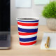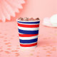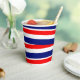 Dieser Papierbecher wird mit einem patriotischen Streifen gedruckt. Passen Sie dieses Objekt an oder kaufen Sie, wie es ist. Börsenbild vecteezy.com