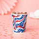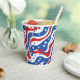 Diese Papiertasse wird mit festlichem patriotischen Sternenprint gezeigt. Passen Sie dieses Objekt an oder kaufen Sie, wie es ist. Lizenziertes Bild vecteezy.com