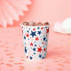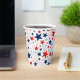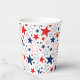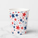 Diese Papiertasse wird mit festlichem patriotischen Sternenprint gezeigt. Passen Sie dieses Objekt an oder kaufen Sie, wie es ist. Lizenziertes Bild vecteezy.com