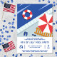 Tauchen Sie ein in den Sommerspass mit dieser 4. Juli Pool Party Einladung! Dieses coole Design bietet eine erfrischende Aussicht auf die Poolszene mit einem rot-weißen Schwimmbecken, eingebettet in das glitzernde blaue Wasser. Am Pool befindet sich eine Sonnenliege unter einem schattigen Schirm. Flip Flops und Sonnenbrillen komplettieren die Szene. Die Rot-, Weiß- und Blautöne in der Farbpalette Sets sind der perfekte patriotische Ton für Ihre Feier zum Unabhängigkeitstag. Bearbeiten Sie die Vorlagen für Ihre personalisierte Einladung einfach. Erhältlich als bedruckte Einladungskarten oder als Sofortdownload zum Versenden auf Ihr Handy.