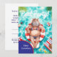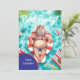 Diese lustige und festliche Einladungskarte zeigt ein glamouröses Nilpferd im Badeanzug beim Poolparty-Thema.