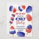 Niedliche Geburtstag Einladung in Stil. Thema: 4. Juli Unabhängigkeitstag Geburtstag. Beruf: Geburtstag. Stil: Niedlich, fröhlich, Spaß. Farben: rot, blau, weiß, Gold. Grafik: USA-Flagge, Sterne, Popsikel.