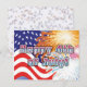 4. Juli Postkarte mit Flagge und Feuerwerk