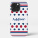 Dieses Handy Gehäuse hat ein lustiges patriotisches Design mit roten, weißen und blauen Streifen und Punkten. Schützen Sie Ihr Handy und zeigen Sie Ihren Patriotismus gleichzeitig mit diesem vereinfachenden und dennoch lustigen Cover. Dies würde für Sie, einen Freund oder eine Familie ein personalisiertes Geschenk machen, indem Sie den Namen auf dem Cover anpassen.