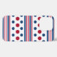 Dieses Handy Gehäuse hat ein lustiges patriotisches Design mit roten, weißen und blauen Streifen und Punkten. Schützen Sie Ihr Handy und zeigen Sie Ihren Patriotismus gleichzeitig mit diesem vereinfachenden und dennoch lustigen Cover.