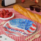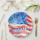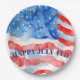 4. Juli GRILLEN Papier Teller mit rot-weiß und blau Hintergrund. und die Worte Happy 4. Juli