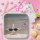 Starfish mit Flaggensonnenbrille und Bikini im Sand mit amerikanischer Flagge für das 4. Juli Party