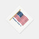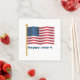 Geschirr für das 4. Juli Party mit der amerikanischen Flagge und Happy July 4 Text.