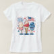 Feiern Sie mit dem 4. Juli T - Shirt dieser Dame im süsslichen Stil, der mit anmutigen Eiscremes in den USA, glänzenden Feuerwerken und Fahnendetails geschmückt ist. Eine fröhliche und komfortable Wahl für festlichen Sommerspass!