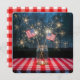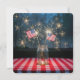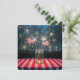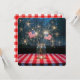 Die Falten strahlen hell aus einem Glas mit kleinen amerikanischen Fahnen, Set auf einem rot-weiß karierten Tischdecken. Alle Texte können geändert werden.