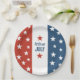 4. Juli Text rot, weiß & blau mit Sternen Pappteller